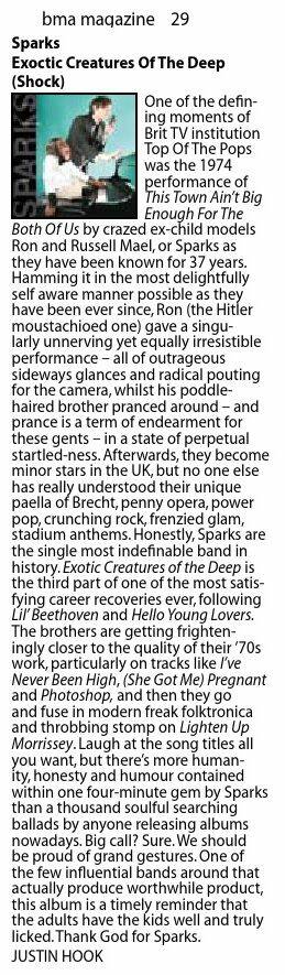 BMA Magazine, Australia, October 29, 2008 Basildon Echo, UK, June 6, 2008 Blurt, UK, December 21, 2008 Coke Machine Glow, UK, June 11, 2008
